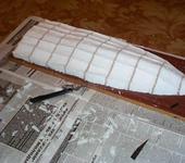 Для шпаклевания упаковочного пенопласта можно использовать обычную строительную шпаклевку. Перед выклейкой поверхность болванки нужно пропитать проникающей грунтовкой и окрасить.