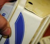 А там, где крепятся шурупы, с двух сторон, опять же на циакрин насадить тонкие полистироловые (как раз тот материал, из которого сделана планка усиления транца) планки.