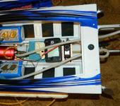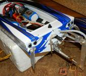 Сегодня спустил на воду катер, был ветер соответственно и волны, максимальная скорость прыгая по волнам получилась 80 км/ч на 2х 6S4000mah30C, на 2х 3S5000mah40C было 60км/ч, катер постоянно взлетал, если на среднем ходу дать газ в пол получается бекфлип, транцевых плит нет и нужды в них пока не заметил, нужна спокойная вода тогда будем поглядеть. Разочаровала потопляемость катера при перевороте, надо делать как у француза (правда у меня случился авто переворот, сорвало акб на один борт до берега бочком дотянул), из неприятностей- попала какая-то гадасть под винт, в следствии чего тот потерял работоспособность, так-же досталось и рулю направления…