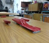 Однозначно не видно , что модель идет на трех точках . Больше похоже на моно , а поплавки в корме служат для стабильности движения узкого корпуса .
