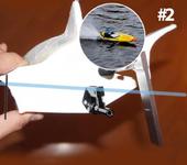 Далее, опять же из старых фото видно, что на повороте лодку сильно кренит, да так, что она почти крылом входит в воду “типа пытается его использовать, как торн фин 😁”. При таком положении вещей, приходит неуверенный вывод, что лодка так себя ведет, из-за некорректно установленного железа, а скула и собственно реданы, которые должны при повороте корректировать ее крен и поднимать борт, не функционируют. И конечно если отойти от правил, учитывая особенности корпуса, то торн фин желательно поставить выше. Смотрим пикчерз ниже: