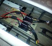 За выходные немного поработал, много точильно-пильных манипуляций как результат, стало вырисовываться внутренняя компоновка, полностью установлена моторама, задняя поддержка и усилитель в передней части корпуса, сделал индивидуальные “седла” под регуляторы с местом для конденсаторов, сидят плотненько снизу еще липучку проложу. Остальное на фото что-то на ЦА-клее, что то просто положил для “вида”😃