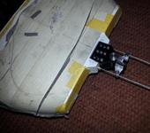 оболочка должна быть закреплена на концах у транца и в корпус вклеена,у сервы с учетом хода качалки закреплена тоже!и натянуты тросы должны быть тоже хорошо!