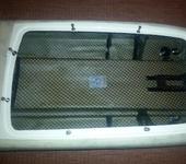 крышка готова,теперь усиливаем лодку, я вклеил кольцо из 8мм фанеры, ложим крышку на фанеру, обводим и выпиливаем электролобзиком,снаружи это уже чистовая обработка, внутри выпиливаем с запасом 5-8мм от края корпуса ,что бы можно было ухватить прищепками, мажем с аэросилом, что бы не текло, и по периметру прищепками,чем больше, тем лучше,когда встанет, наклеить скотч бумажный , что бы не поцарапать лодку, и выпиливаем на чистовую лобзиком по контуру лодки лишнюю фанеру, обрабатываем края, и ВУАЛЯ!