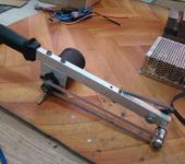 сделана хоть и из нового,но древнего 40-летнего мотора ДПМ-5,на 27V, алюминиевого прямоугольного профиля,ролика от видеомагнитофона,блока подшипников старой видеоголовки и ручки от китайской болгарки, ну и еще по мелочам ,плюс мощный китайский блок питания на 20-40в