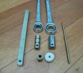 Нужно накидной ключ с трещеткой,отвертка, с жалом под нужный винт шестигранник,например ,такая как на фото 1,у нее жало съемное,думаю у многих такие,сталь выше всяких похвал, надо подобрать шестигранный пруток подходяший под используемый ключ ,у меня было сделано два варианта под головку болта на 8 и 10мм,можно и латунный использовать, сверлить легче,сверлим в нем отверстие под жало отвертки и стопорный винт,находим подходяшую квадратную и другого сечения палочку,и сверлим в ней отверстие, тоже под жало отвертки,это будет ручкой ,фетр работает как фрикцион, взят от дремеля и нанизан на жало для того, что бы отвертка туго крутилась в ручке,и трещетка легко срабатывала при незатянутом винте который мы крутим,задняя втулка со стопором, нужна только для прижатия ручки к фетру и регулировки силы прижима, поставить или снять мотор пару минут работы с перекуром!