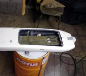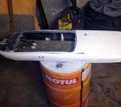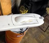 Сейчас катамаран уже в гараже и тихим ходом идет зачистка от красок которую нанес предыдущий продавец поверх родной. Такое ощущение, что поверхностная краска наносилась без соответствующей зачистки и баллончиком в один заход, вокруг подтеки и неровности.
