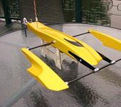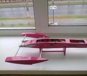 Руль чудовищной толщины сжирает 10-15% скорости-поставьте тонкий 1,5-2 мм хоть из пластинки стеклотекстолита,забор воды можно сделать с пятки правого поплавка или кормовой лыжи.
