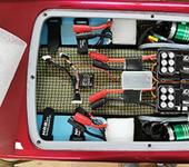 На фото, как было сделано у меня. Сейчас аккумы и регуляторы сдвинуты примерно на 3 см вперёд. При этом регуляторы стали в два раза легче! К тому же, добавятся ещё два аккума(по 2S), что бы получилось 8S. Они лягут посередине под палубой. Крепление на липучке + прижимная пластина.