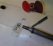 потом вал выпал из переходника, думал винт отпал аль нет, достал с машины ключик на 7 и пасатижами зажал намертво ) потом при повороте налево на скоросте лодка ушла носом в дно! благо геретичен зделал копус! дома начал откручивать винт и вот что вышло 😦 я разачарован, а планировал завтро сутреца пройтись на море попробывать попускать еще. Кстати винт я подрезал, де то на 1-2мм каждую лопасть, акуратносимметрично и заточил края нулевочкой как было по родному!!! потом ловил глюков разных. и это притом что ставок в чистом поле и аппаратура футаба 3пм, странно, может быть это из-за попадания капли воды на контакты в приенмик в районе входа их!