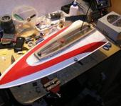 вот еще маленький фотоотчтик по моей лодочке. на одной из фото виден вес 1.2 кг. и примерно я определил Центр Тяжести, профи подскажите для моей лодки его смещать стоит? впринципе по заныриванию шлепанью вопросов вроде нет, все ок, просто невыходил на макс обороты.