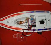 Покатался на SUNSTORM 600. В принципе все устраивало, но захотелось скорости поболее. Решил поставить бессколлекторник. Почитал посты в форуме по доработке данной модели и решил остановится на следующем варианте. Сам корпус решил не трогать. Уж очень нравятся герметичные отсеки. Привод тоже решил оставить родной с штатным погружным винтом 31х1.4. Единственно доработал место крепления мотора, усилив жесткость моторного осека эпоксидным пластилином. В качестве силовой устоновки выбор пал на систему мотор+регулятор Novak XBR Sport-EX 13_5 Brushless System Novak-3032. У мотора 3000 об/вольт, мощность 165 Вт по паспорту. Для такого корпуса, решил, что это будет как раз - ни много, ни мало. Испытания на воде показали, что выбор был в принципе сделан правильный. Скорость лодки возросла на вскидку раза в 1,5. На глиссирование выходит очень быстро. Лодка уверенно идет на максимуме, наблюдается не большое дельфинирование. Единственный замеченный минус - на максимальной скорости лодка плохо слушается руля. Наверное связано с тем, что на максимуме корпус поднимается из воды и при этом уменьшается площать погруженного в воду руля. В половину газа лодка очень послушна. Вообще в целом очень считаю апргрейд удавшимся. удовольствия от запуска получаю больше, чем от штатного варианта. Стоит отметить, что время катания с БК увеличилось при одинаковых акках; движок , регуль и акк еле теплые после запусков. Если получится и если кого заинтересует, постораюсь выложить видео.