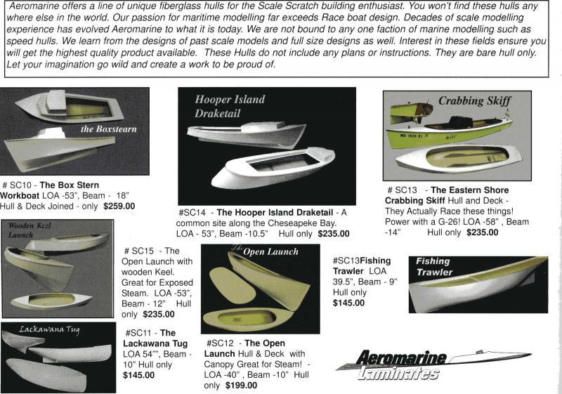 Аэромарине предлагают корпуса серьёзных размеров 1,4 -1,5 метра и обеспечивают доставку. Так же у них есть паровые машины, котлы, бензиновые машины начала 20-30 американских годов, вопрос в пожеланиях и деньгах.