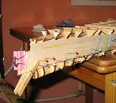 А можно немного смачивать рейки спиртом и прижимать струбцинками. На сегодняшний день борта закрыты по десять реек на всю длинну и проблем особых не было но дальше придется подрезать под контур.