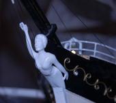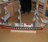 Пока надстройки паяю и решаю, делать на радио или нет. Есть несколько за и против: с одной стороны интресно подобное соорудить (на слабо:)), тем более радио-парусник - редкость, но возникают некоторые технические сложности - если лебедки еще можно достать, например, заказать у Футабы, то сама схема управления парусами для меня пока неизвестна (на модели есть винт - следовательно, можно засунуть мотор). Да и хватит ли осадки - если моя модель в данном масштабе сядет по ватерлинию, то расстояние от воды до клюзов в фальшборте около 3 см, боюсь, что если ветром чуть завалит - зальет и утопит… И третье - как добираться до аппаратуры внутри, когда таккелаж будет установлен? Я ж переломаю все ненароком.