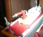 По использованию на воде модель стоит пригружать ниже ватерлинии(форма корпуса позволяет), ходовую часть - один двигатель редуктор и далее два вала и винты.