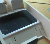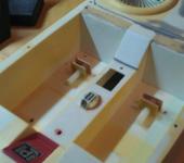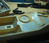 Фотки процесса постройки катера, если вдруг кому интересно. Вот тут видно как чего вырезалось, монтировалось, расширялось, потом снова заклеивалось. Сначала планировал сделать два люка - в середине и сзади. И были сделаны оба, но потом от среднего было решено отказаться, оказался не нужен. Люк заклеил, но его поддерживающая рама осталась и стала выполнять роль опорной для соединения с нижней частью корпуса. Кстати на фотках видно в каком состоянии катер был перед началом переделки. Пластик пожелтел, хотя катер всё время хранился в шкафу. Люди, не покупайте дешёвую фенольную мебель, от которой даже полистирол меняет цвет! На фотках ещё первоначальные длинные движки и большой аккум. Сейчас они заменены на по-мельче и по-легче.