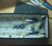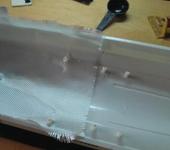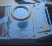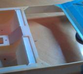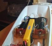 Фотки процесса постройки катера, если вдруг кому интересно. Вот тут видно как чего вырезалось, монтировалось, расширялось, потом снова заклеивалось. Сначала планировал сделать два люка - в середине и сзади. И были сделаны оба, но потом от среднего было решено отказаться, оказался не нужен. Люк заклеил, но его поддерживающая рама осталась и стала выполнять роль опорной для соединения с нижней частью корпуса. Кстати на фотках видно в каком состоянии катер был перед началом переделки. Пластик пожелтел, хотя катер всё время хранился в шкафу. Люди, не покупайте дешёвую фенольную мебель, от которой даже полистирол меняет цвет! На фотках ещё первоначальные длинные движки и большой аккум. Сейчас они заменены на по-мельче и по-легче.