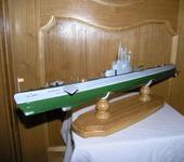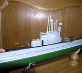 Делал полностью самостоятельно. На базе судомодельного кружка. Участвовала в трех соревнованиях- первые места. Модель не радиоуправляемая, но с динамическим погружением. Корпус-стеклопластик, рубка и пушки-металл. Продавать не собирался т.к. это моя первая модель, до этого только доделывал старые кружковские модели.