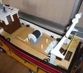 Вот попытка превратить игрушку,во что то похожее на модель.Правда размером по больше,85см и весом около 5кг,но обводы очень похожи на вашу.Обороты на полном ходу-7200,винт-40/0.75,потребляемая мощность от батареи 10вольт,составляет 25Вт,скорость примерно 7 узлов.Для экономии места и энергии от батареи,установлен безколлекторный привод.Для переноски,использую сумку для “челноков”,размером 80х80х40,благо носить не далеко,пруд рядом.