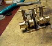 Шестеренка-понижающий редуктор)))) Маленькая шестеренка на двигателе, большая на валу. Получился понижающий редуктор 1-3. При длине парохода в870 мм диаметр четырехлопастного винта 78мм.