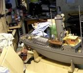 Начался нудный процесс выведения мелких косяков. Покрасил грунтовкой корпус и основные надстройки. Не смог удержаться,что бы не посмотреть что получается)
