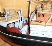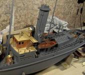Палуба имеет погибь. За счет кронштейнов рельсы стоят ровно. Ну а потом это 1937 год. “Кто хочет мира,пускай готовится к войне” Из простого буксира путем несложной перестройки сделали военный параход. Наростили бак и туда пуху 75 мм. На крыльях мостика 20мм автоматы. Оборудование для траления и постановки мин.
