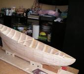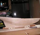 Высота 18см. Набор корпуса, киль шпангоуты фанера 8мм. Выпилил электро лобзиком далее напильник наждачка до готовности. Изобразил стапель. Приступил к сборе. Клеил столярным водостойким. Приступил к обшивке. Обшивал бальсовыми рейками 2.5мм толщиной 6мм шириной.