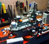 Евгений, как раз эта мачта “Е” по надписи, хрен поймёшь, я понял что вместо “подносов” должна стоять аля “Восход”, как у меня на “Керчи”, (только помельче;) " Фрегат-М" имя ему…