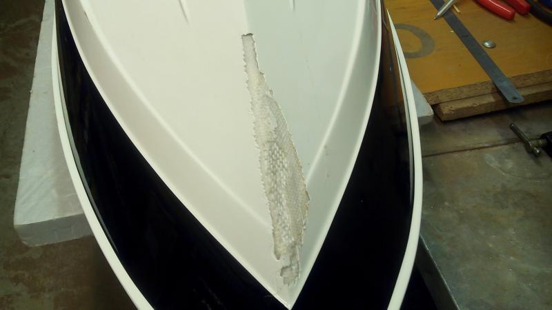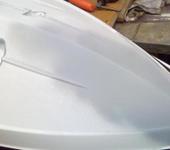 Ну и наконец то поработал шпаклевкой с поврежденным носом судна, вывел линию сопряжения бортов.