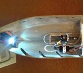 Экспериментируя с подруливающим устройством, выявил для себя следующие полезные моменты: при незначительном погружении сопел, КПД значительно выше, хороший результат показала двух лопастная крыльчатка, четыре лопасти гребут также, но двигатель греется сильнее, в моем случае хватило примерно 2500 об. мин. Масса изделия в сборе составила 96г. Перегруза пока не наблюдается, единственное не определился как быть с аккумулятором, запитать от основного ,либо поставить дополнительный.