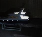 Кораблик спущен на воду - результат удовлетворительный. Двигатель 1180KV на мой взгляд маловат, перебрал несколько винтов, больших изменений не последовало. Рулится хорошо, двигатель подруливающего устройства, для большой воды оказался слабоват (от механизма лентопротяжки). Электроника отработала без сбоев, перегрев не наблюдался, уровень разряда батареи не замерялся, водоем бороздился около часа.