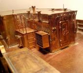 Так, что при необходимости всё ремонтно-доступно. Ну что ещё,да -оси рулей из старых сидиромов-калённые, шлифованные, нержавейка, 3мм. диаметра.Дома конечно не строгаю доски, это делаю в кружке, на своём рабочем месте. "Большие “токарные” работы - в классе, есть пару токарных станков, один Чешский. Вот отсутствие фрезера- многое усложняет.Дома есть часовой токарный, под щтихеля(без резцодержателя),хорошая сверлилочка(патрон от 0,5 до6. Все дельные вещи-надстройки и т.д.строю вечерами дома, это расслабляет. Ни 3-Д принтерами и подобным современным станкам не обладаю, да уже и мозгов не хватилобы их освоить.Ну если припрёт- то коллеги помогут. Вот жалюзи на трубах- Литвинов выфрезеровал из полистирола, на коленках мне в жизни такое не сделать. Вот попытается то-же самое отлить из латуни, жду что получится. Вот у него современного оборудования- глаза разбегаются… Что меня здорово выручает, так это приличный запас пилочек для лобзика разных калибров по металу фирмы “BERGEON” .