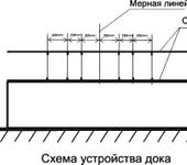 Док должен быть установлен в форме прямоугольника и должен быть покрыт по обеим сторонам материалом, предохраняющим модель от повреждения. Прямоугольник дока располагается перпендикулярно причальной линии. Длина дока – 4м. Допускается установка дока длиной 2м от входа в док до мерной линейки.