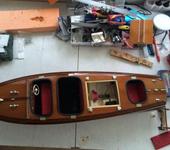 Недавно мою был приобретен прогулочный катер Michigan длинна 840мм ширина 220мм высота 160мм. Катер понравился своим внешним видом (сверху покрыт натуральным шпоном), но первый же спуск на воду показал что выглядит он гораздо эффектней чем ходит. Скорость на полном газу оказалась около 7-10 км/ч(Установлен коллектор 550 класса (больше обозначений нет) на липо 2S, что оказалось как то маловато, и были обнаружены трещины на лаке.