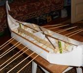 По поводу работы вёсел. Схема очень простая получилась, в конечном итоге, хотя пришлось довольно долго повозиться с регулировкой. Конструкция видна по фото, где палуба снята с модели.