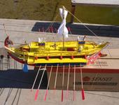 Модель построена в 2014 г. Изначально ходила на вёслах. Позже добавлены мачта и парус, который можно поднимать и опускать с помощью лебёдки. И всякий разный антураж, вроде башен, баллист и команды.