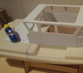Корпус и палуба - единое целое, с вклеенным транцем и фанерным шпангоутом. Сделан не из АБС пластика, как раньше. Пластик жесткий, толщиной около 2мм. Из этого же пластика сделана крыша надстройки;