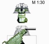 внутренний диаметр башни - 45мм. Всего. Кроме двух стволов там ничего не поместится. Всё остальное снизу, и подача тоже. На прорисовке это видно.