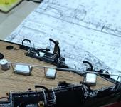 Всё работает: двигатели, серво, вращение башни (пока только кормовой, на вторую надо еще плату сделать и детальки кое-какие), стрельба башни с пусканием дыма, звук, дым из трубы. Остались только бортовые огни и прожектор, но они находятся на верхнем мостике. Как его соберу, так и подключу.