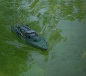 Вот фотки, если мелковато перешлю исходники. Двигатель один 4,8 В, чтото типа спида 200. В корпус вклеена фальш палуба с вырезами для доступа. Выреза перед пусками заклеены самоклейкой. В носовой части вывод под антенну (разьем мама). Основная палуба со всеми деталями крепится винтами к фальшпалубе, винты скрыты деталями - грибками вентил. и лючками. На фото внутрянки нет акк. и приемника, серва мини.