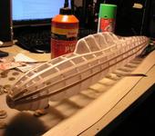 По строительству корпуса лодки, лучше сделайте секции лодки толстыми (целиком на секцию шпангоута и насаживайте пенопласт на металлический шпиль.