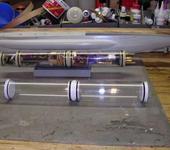 Заглушки на колбах не закручиваются. Они имеют кольцевой резиновый уплотнитель, и просто плотно вставляются в колбу. Электронику можно разместить на листовой пластние. Пластина крепится Г-образными стойками к заглушке. Пластина может вставляться по П-образным направляющим, а может и без них, на конце пластины делаешь круг или полукруг из плекса, размером чуть меньше внутреннего диаметра колбы, он будет поддерживать пластину, чтобы она не сгиналась.