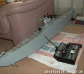 Теперь о модели. Предыстория : делал модель не я, а один дед-моделист из Гамбурга. Он таких лодок сделал к сегодняшнему времени аж ок. 160 единиц. Я выполнил только отделку, (покраска, кнехты, киповые планки, люки и т.д.) не особо стремясь к сходству с оригиналом (немецкая ПЛ тип VII времен II мировой войны) Я увидел похожую лодку, которую продавали на ebay и “запал” на нее (я бывший офицер-подводник, захотелось снова в море:-)). Если кто-то бывает в Германии, может заказать такую же (пишите мне на мыло, я дам координаты). Моя лодка стоила (без передатчика) 270 EUR.