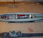 Если вы решили строить маленькую лодку 877-ю или Волка, то хочу сразу редупредить. С маленькой моделью проблем будет больше, поскольку необходимо точно расчетать вес, запас плавучести и объем балластной цистерны. Скажу, что в 877 у меня не получилось сделать лодку чтобы она была осажена под ватерлинию, поскольку вес потрахов и объем цистерны не позволили сделать это. Лодка при всплытии сидит под палубу.