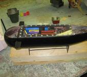 Я, конечно, точно не считал объем БЦ, но примерно 300грамм.Хочу или точнее уже строю лодку U-505,но копия не получается, даже полукопией-вряд ли можно назвать. При длине 800мм корпус имеет высоту 120мм(на мидиле). Я даже фотки корпуса боюсь сюда выкладывать, хотя корпус почти готов.Сегодня начал вклеивать в него детали.Мне нравятся лодки второй мировой, но их пропорции не очень удобны для р/у, и поэтому пришлось немного изменить размерения корпуса-так что сильно не пинайте.И это еще не все-винт будет один, ну кончились у меня коллекторные моторы, а если ставить два бесколлекторника-надо и два рег хода и, желательно, с реверсом.