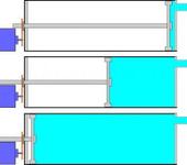 Нарисовал рисунок показывающий стадии заполнения водой поршневой БЦ, мне кажется все должно быть понятно, все как у большого шприца. Вода до гайки не доходит, поршень мешает, (вода голубенькая справа от поршня).