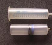 Приятно удивило, что копеечный по стоимости шприц на 160 мл точно встал по диаметру в несущий каркас передней секции. Штуцер установлен, так как был в запасах. Поршень немного доработан колпачком из пластика из какого-то пузырька для лучшей центровки поршня в шприце и упора дном в конечный выключатель прекращения накачки.
