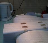 Далее. Перед сборкой крыла я вырезал каналы под провода, чтобы потом не мучиться. Ну и после сборки вышел на обтяжку бумагой. Честно скажу- думал не справлюсь😵, но опыт не пропьешь и всего за несколько часов я победил крылья и фюзеляж:P.