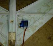 Стабилизатор, тоже особо говорить не чего, сервомашинка будет одна, управление на консоли РВ будет передаваться через тягу к которой прикрепил и вклеил не нужные качалки от серв.